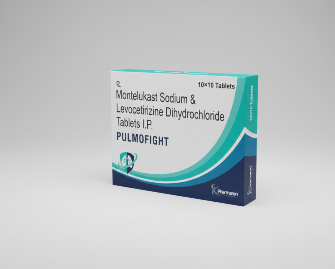 Pulmofight Tablet is a combination medicine used in the treatment of allergic symptoms such as runny nose, stuffy nose, sneezing, itching, swelling, watery eyes, and congestion or stuffiness. It also reduces inflammation in the airways and makes breathing easier.